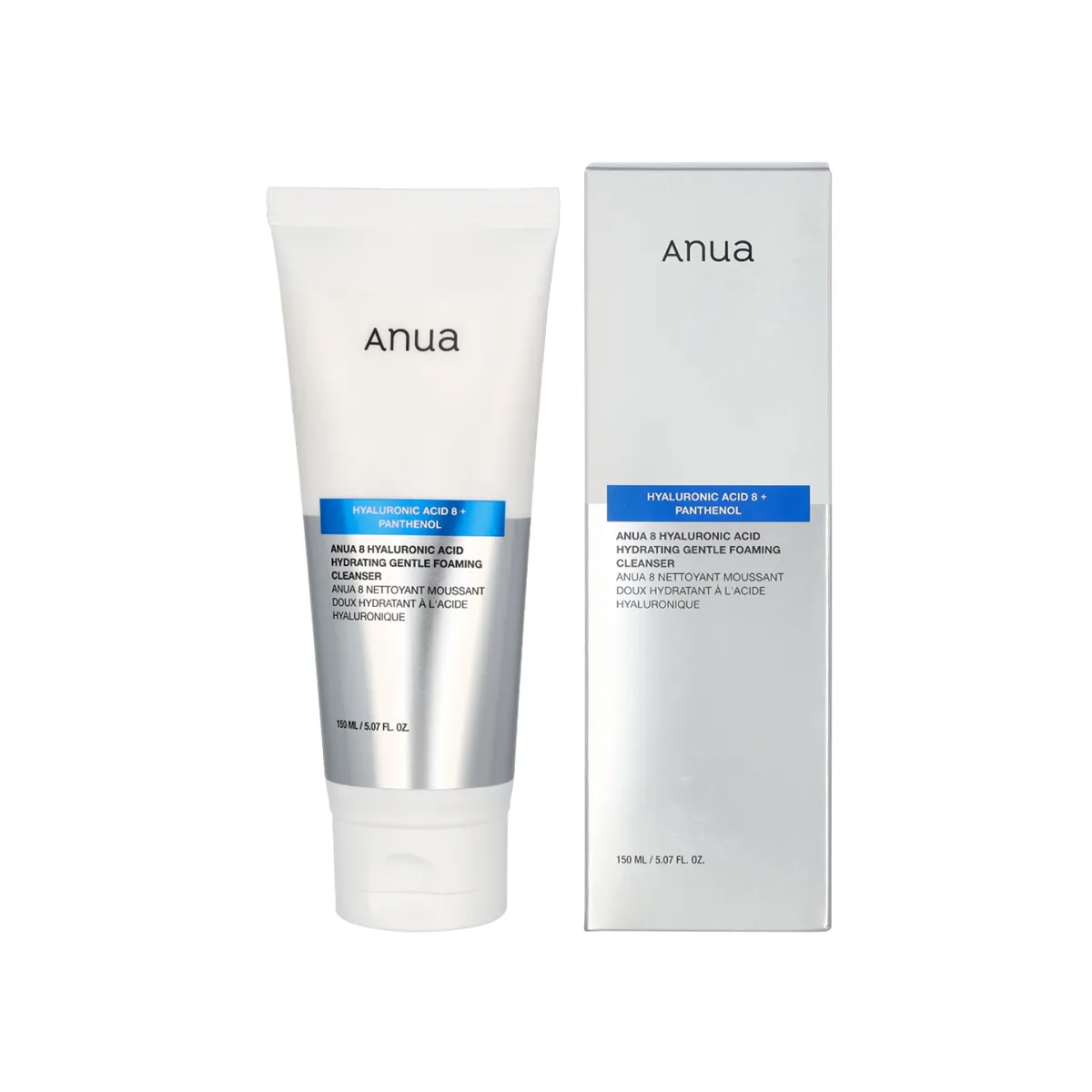 ANUA 8 Hyaluronic Acid Hydrating Gentle Foaming Cleanser yra švelniai putojantis prausiklis su 8 tipų hialurono rūgšties kompleksu, sukurtu daugiasluoksnei hidratacijai. Didelės molekulinės masės formos veikia paviršiuje, mažos ir labai mažos – difuzuoja giliau, o sodium hyaluronate crosspolymer bei sodium acetylated hyaluronate padeda sukurti ilgiau išliekantį, vandens magnetą primenantį plėvelinį komfortą. Rezultatas: švara be tempimo jausmo, oda atrodo elastinga, neperkrauta ir švelni kaip po lengvo drėgmės kompreso.