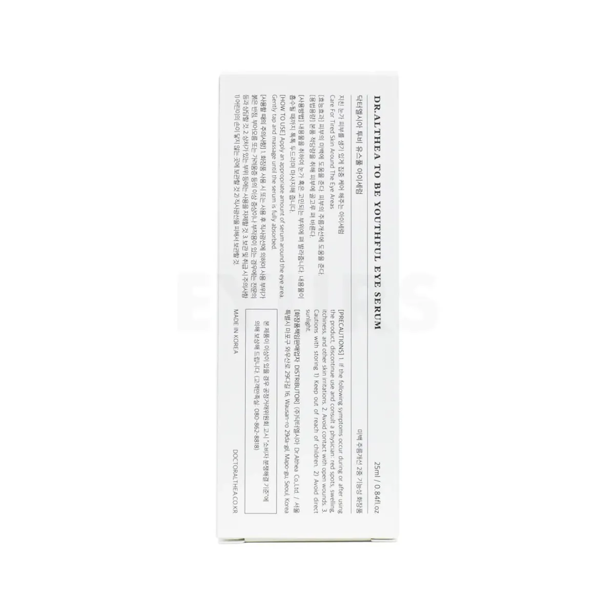 DR. ALTHEA To Be Youthful Eye Serum – jauninantis akių serumas kuria būtent tokį balanso efektą. Lengvas, serumiškas gelis, kuris susigeria greitai, tačiau palieka švelnią, neužsikemšančią „mikroplėvelę“ komfortui. Formulė su gerai ištirtomis aktyviosiomis medžiagomis veikia keliais lygmenimis: humektantai įtraukia vandenį, emolientai sulygina paviršių, o peptidai ir kofeinas taikosi į patinimus bei smulkias raukšleles.