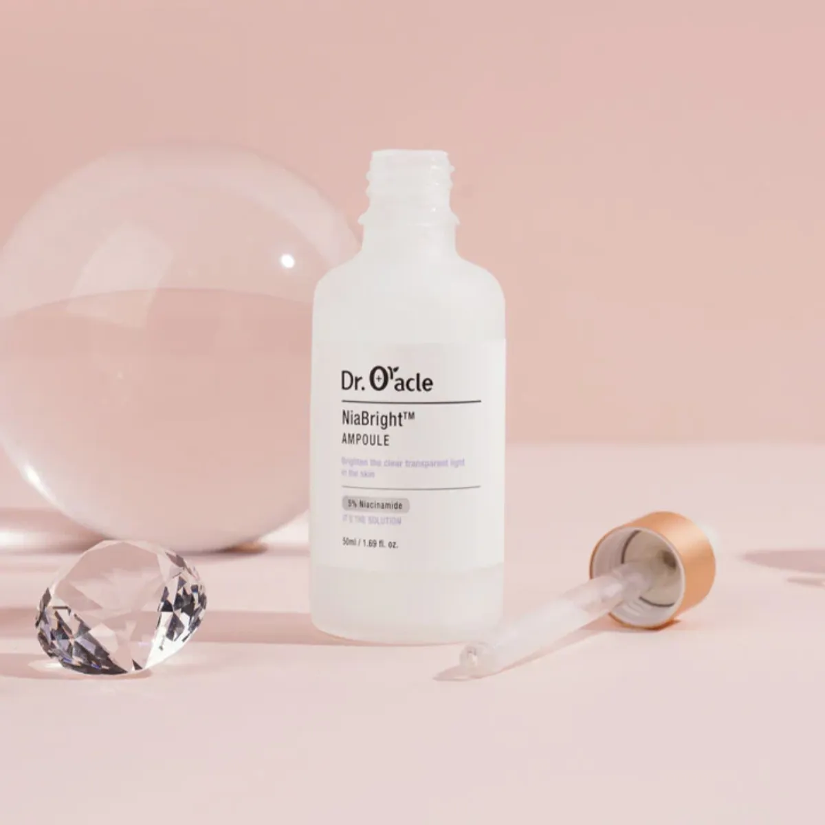 Skaistesnė oda prasideda ne nuo triukų, o nuo biochemijos: nelygus tonas ir papilkėjimas dažnai kyla iš sujauto barjero, perteklinės pigmentacijos ir uždegiminių signalų. Čia įsijungia DR. ORACLE NiaBright™ Ampoule – koncentruota ampulė, kuri remiasi tuo, kas veikia, be nereikalingų triukšmų.