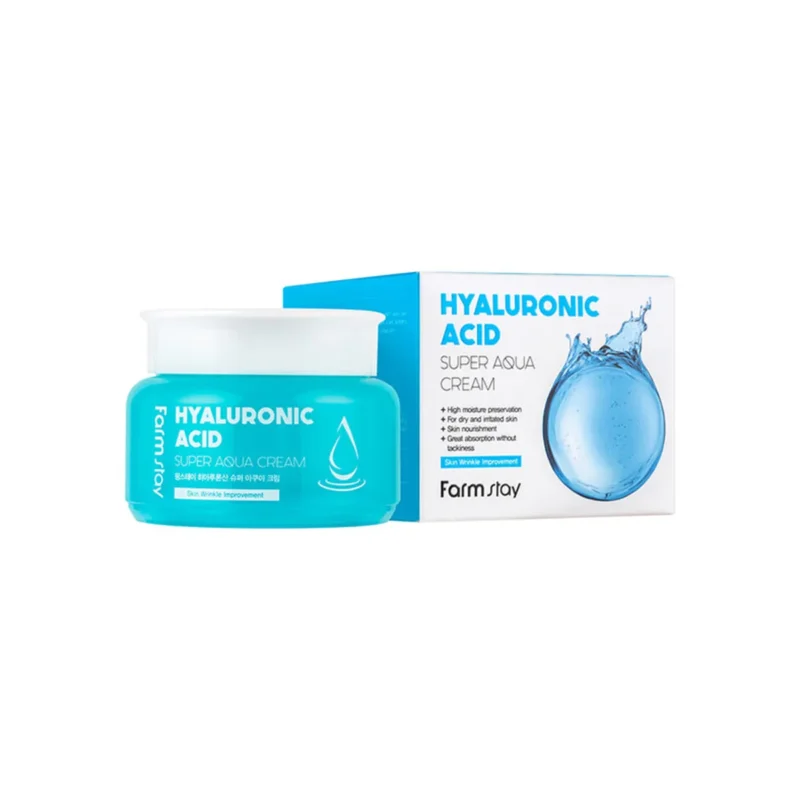 FarmStay Hyaluronic Acid Super Aqua Cream tepkite ant švarios, toniku sudrėkintos odos, švelniai paskirstydami kremą per visą veidą ir kaklą; naudokite ryte ir vakare kaip paskutinį odos priežiūros rutinos žingsnį, kad užtikrintumėte optimalų drėkinimą ir apsaugą.