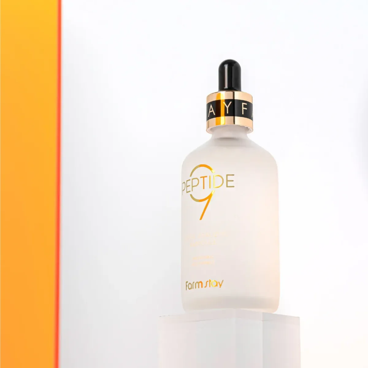 FARMSTAY Peptide 9 Super Vitalizing Ampoule – jauninanti peptidų ampulė jungia dermatologijoje vertinamus peptidus su odos barjerą stiprinančiais komponentais. Pats „Farmstay“ pavadinimas sufleruoja stabilumą ir nuoseklumą: kantrų, rezultatų siekiantį požiūrį. Čia vyrauja laboratorinis tikslumas, o bazė parinkta taip, kad oda jaustųsi rami ir hidratuota.