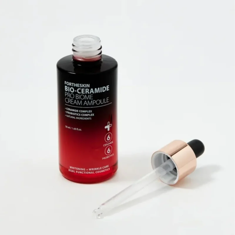 Bio-keramidai – odos barjero pagrindas. Šis kremas-serumas sujungia keramidų galią su subtiliai suderinta probiotikų formule, padedančia atkurti ir sustiprinti natūralų odos apsauginį sluoksnį. Fortheskin Bio-Ceramide Pro-Biome Cream Ampoule yra skirtas tiems, kas ieško tikslių, moksliškai pagrįstų ingredientų savo odos priežiūros rutinoje.