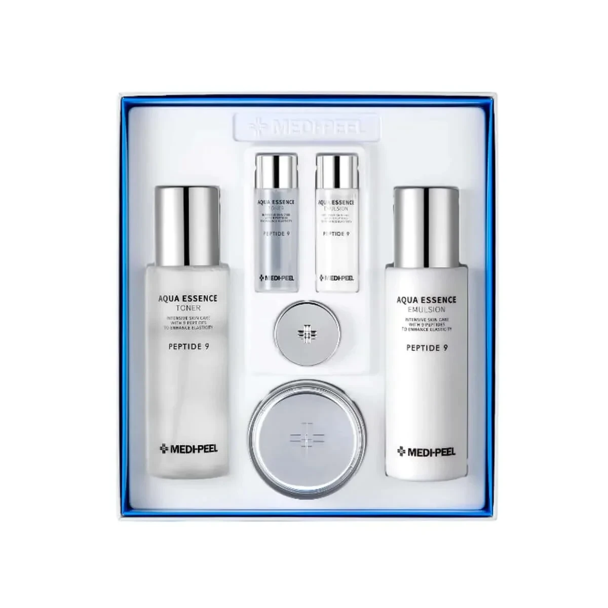 Ant švarios ir sausos veido odos naudokite MEDI-PEEL Peptide 9 Skin Care Special Set rinkinio priemones nuoseklia eilės tvarka: pirmiausia paskirstykite reikiamą kiekį toniko ant vatos diskelio arba tiesiai į delnus ir švelniai įtapšnokite į odą, kol visiškai susigers. Tuomet užlašinkite kelis lašus serumo ant veido bei kaklo ir tolygiai jį įmasažuokite. Po to tepkite emulsiją – švelniais sukamaisiais judesiais paskirstykite nedidelį jos kiekį, kad oda būtų giliai sudrėkinta. Priežiūros rutiną užbaikite veido kremu: užtepkite atitinkamą jo kiekį ant odos ir švelniai glostykite, kol priemonė pilnai įsigers ir užfiksuos visus veikliuosius komponentus.