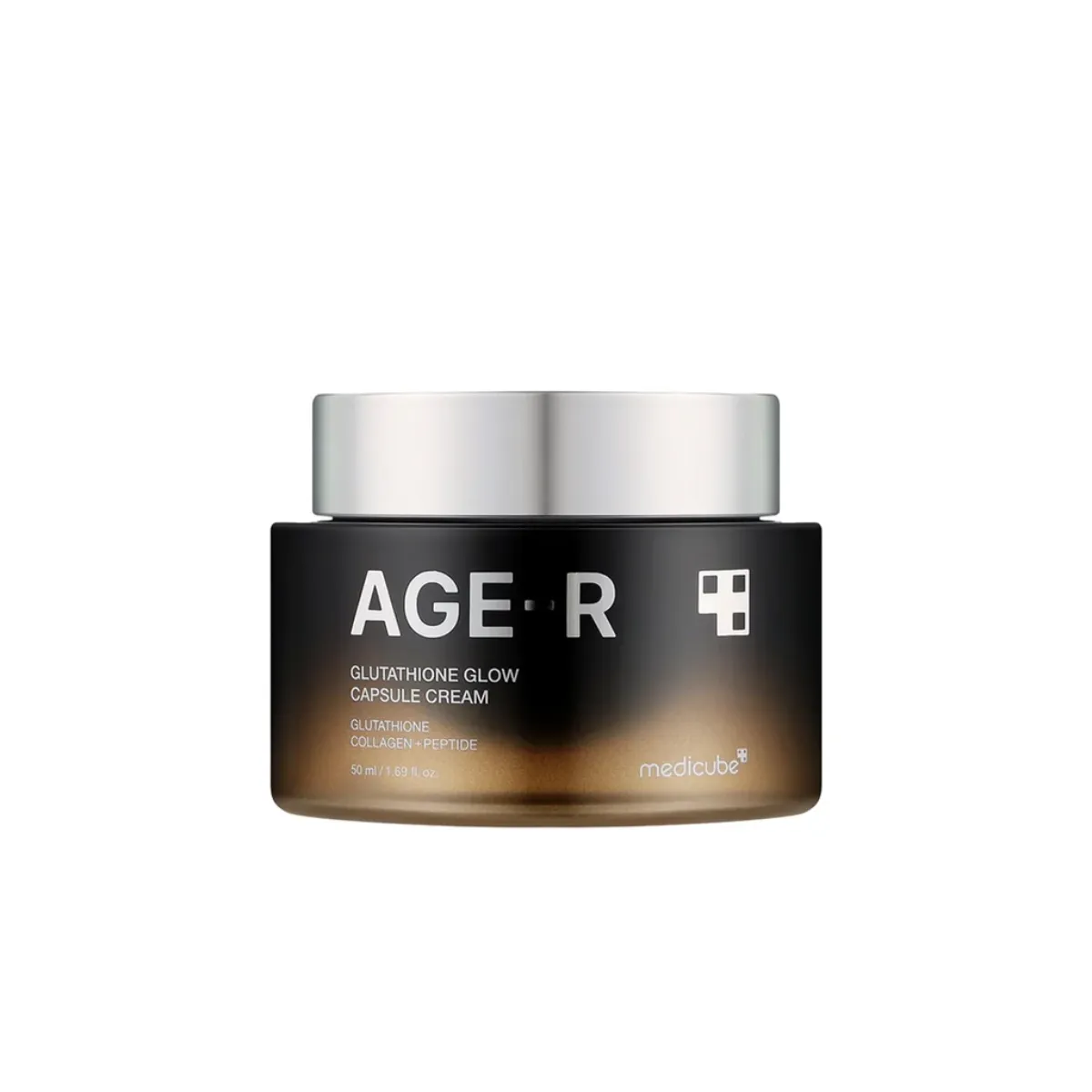 Čia įsijungia MEDICUBE AGE-R Glutathione Glow Cream. Jo ašis – glutationas, tripeptidas (γ-glutamil-cisteinil-glicinas), natūraliai esantis odoje. Ši molekulė yra galingas reduktorius: neutralizuoja laisvuosius radikalus, mažina oksidacinę žalą ir netiesiogiai veikia melanogenezę, kad tonas atrodytų lygesnis. AGE-R pavadinime užkoduota filosofija: atidžiai valdomi procesai prieš pažengusius glikacijos galutinius produktus, grąžinant odai elastingumo ir švytėjimo rezervus be perteklinių triukų.