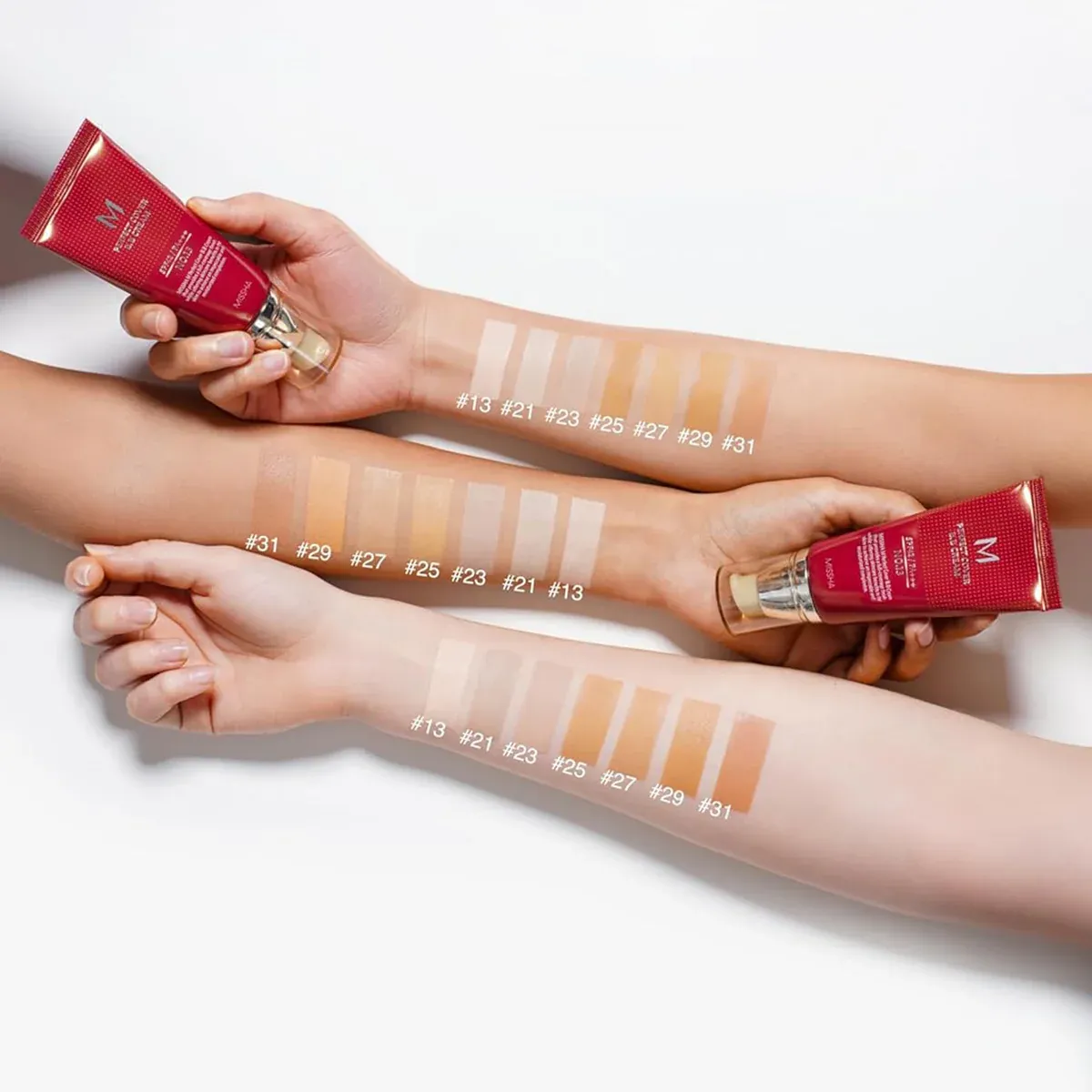MISSHA M Perfect Cover BB Cream EX SPF42 PA+++ (No 21) – natūraliai dengiantis BB kremas įkūnija korejietišką „mokslo + kasdienio praktiškumo“ filosofiją. Atspalvis #21: šviesus bežas su neutraliu pospalviu, nepergeltonina ir nepilka. Mikronizuoti pigmentai ir sferinės pudros dalelės sukuria švelnų „soft-focus“ efektą, todėl poros ir smulkios raukšlelės tampa mažiau pastebimos. Danga statoma: nuo natūralios iki vidutinės, su satininio blizgesio finišu, kuris „seka“ odą, o ne ją užrakina.