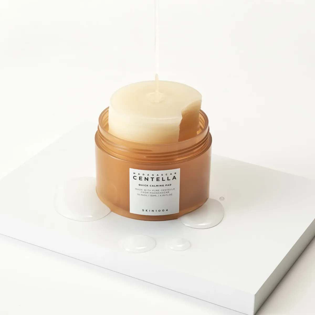 Ramybė odai. Greitai. Be triukšmo, tik apgalvota chemija ir švarus veikimas. SKIN1004 Madagascar Centella Quick Calming Pad – raminantys centella diskeliai sujungia aukštos grynumos Centella asiatica ekstraktą iš Madagaskaro su subalansuotu drėkiklių ir odos barjerą palaikančių medžiagų deriniu. Rezultatas: jautrios, paraudusios ar įsitempusios odos komfortas, kuris juntamas akimirksniu ir laikosi stabiliai.